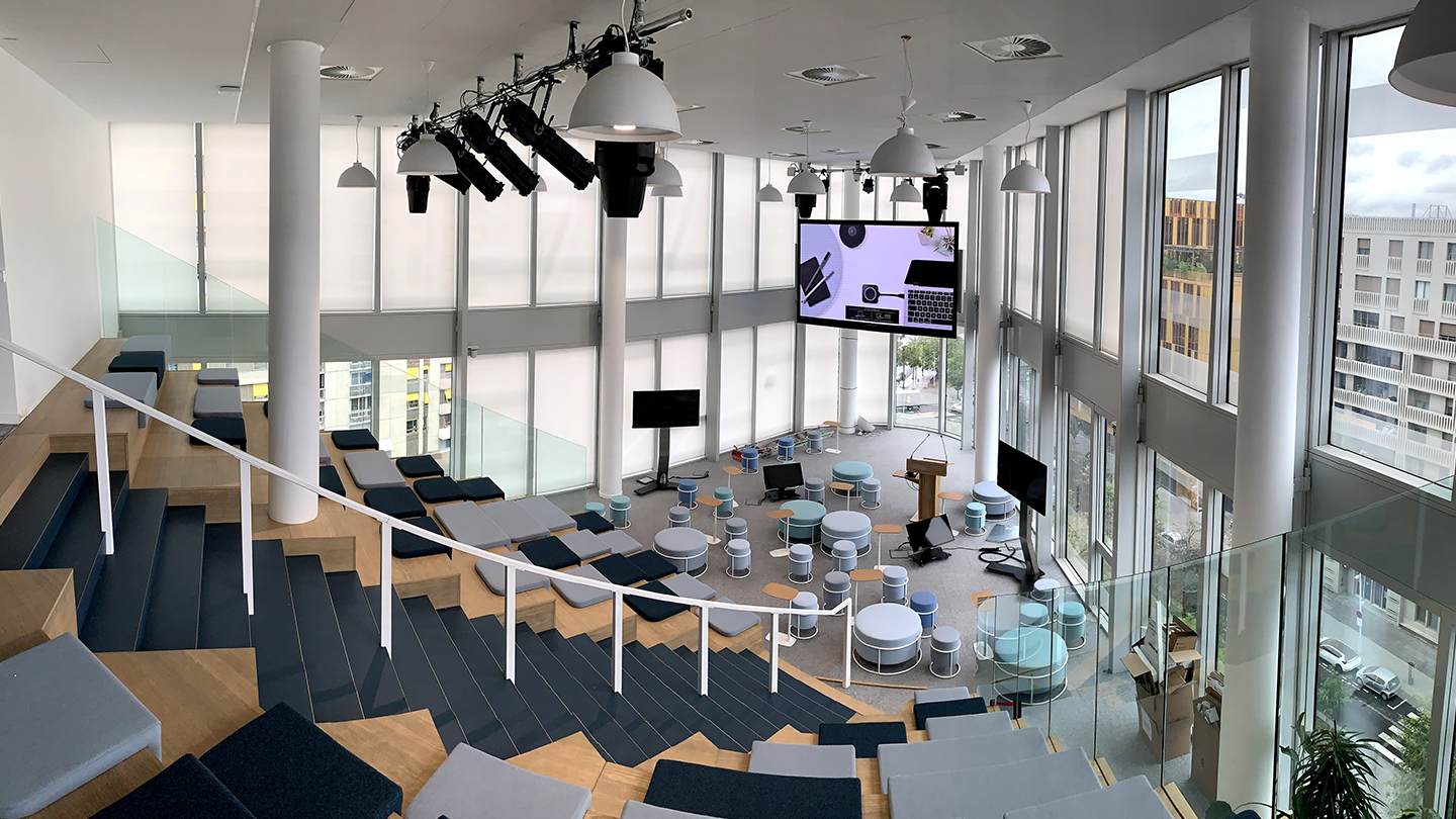 In June 2019, during their moving to the Angle site, located at 4 Cours de l’Ile Seguin, Boulogne Billancourt, Roche started some audiovisual integration work for their meeting rooms, plus collaborative and events areas.