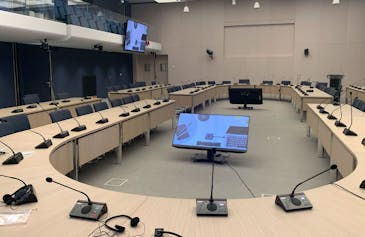 En faisant appel à LM Ingénierie Audiovisuel l’objectif était, d’une part d’augmenter le nombre de places disponibles (en passant de 24 à 28 places), et d’autre part d’étendre les fonctionnalités proposées par le système audiovisuel tout en le renouvelant dans sa totalité, ceci dans le respect de fortes contraintes budgétaires et de planning.